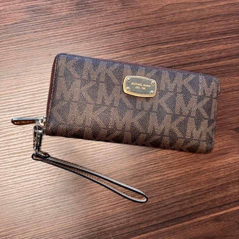 Fin plånbok som stängs med dragkedja och har fack för ID-kort, betalkort och sedlar. På insidan finns även ett myntfack med dragkedja.