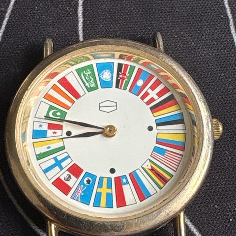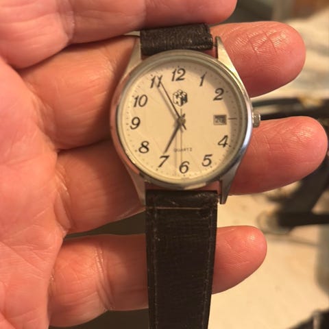 Extrafilm armbandsur för unisex med analog urtavla. Urtavlan är ljus med arabiska siffror och tre visare (tim-, minut- och sekundvisare). Boetten är i metall med rund form. Baksidan av boetten är märkt med "Extrafilm". Klockan har svart läderarmband med klassiskt spänne och flera hål för justering av storlek. Drivs av kvartsverk (quartz) enligt märkning på urtavlan.det behövs ny batteri
