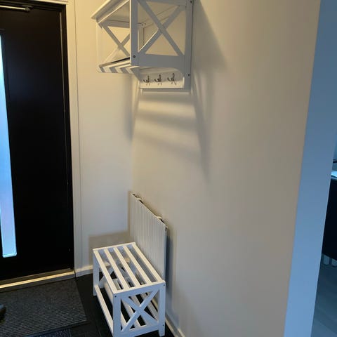 Sittbänk med grå dyna till hallen med 2 fack till skor 8 par, ,