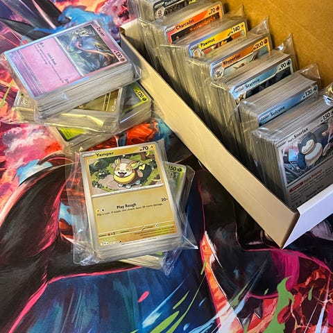 75 Pokémonkort per hög