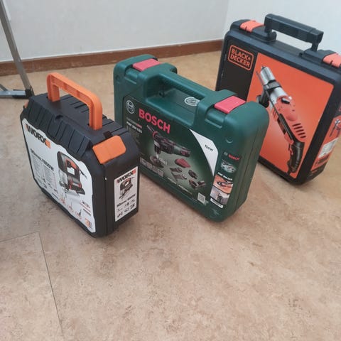 Blandning av elverktyg , bultpistoler, spikmaskiner , tigersågar ,mutterdragare mm mm i varierande skick . Säljes som ett paket som kräver lite omsorg . De flesta maskiner fungerar men behöver kanske lite service . Slumpas bort