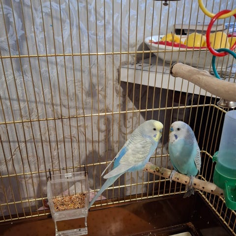 Säljes på grund av platsbrist. Friska och välmående. Bur 70_ 60 × 30 cm samt 2,5 kg