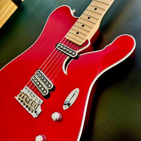 Tunn NITRO-lack T-Röd på 1 stycke mkt lätt furu. Superbt flammig lönnhals Med jumbo frets. Modern Kluson tuners. Vintage alnico humbucker i halsläget. Custom designad Bridge pu: QP 11,4k alnico 2/5 magnets.