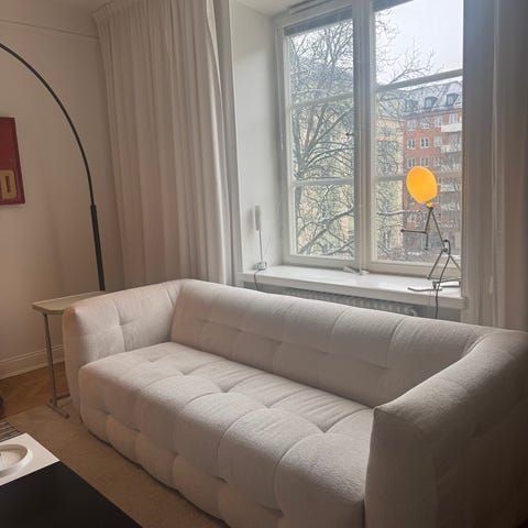 2st Vitra Alcove Highback soffa i rött tyg. Soffan har hög rygg och sidor med horisontell kviltning som skapar en avskärmad sittplats. Klädseln är i tyg och soffan har lösa ryggkuddar i samma färg. Underredet är i metall med smala ben. Modellen är utformad för två till tre sittplatser och passar i vardagsrum, kontor eller mötesytor där man vill ha en mer avgränsad sittzon. Nypris över 120 000kr. Säljes för 13500kr eller högstbjudande. Riktigt fynd!