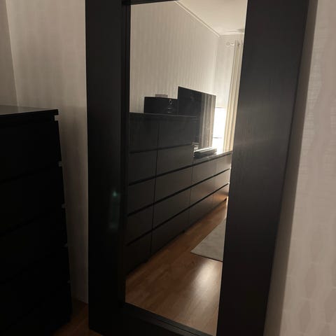 Stor stilren spegel 90x130 med svart ram, PORTAL (IKEA)