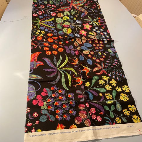 Svenskt Tenn metervara lin-tyg med elefantmönster blå gul turkos bomull