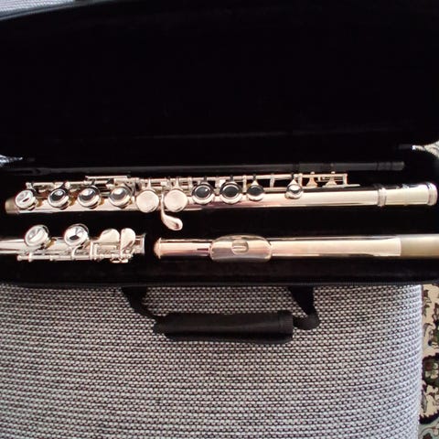 Tvärflöjt Miyazawa med munstycke i silver. I gott skick. Genomgången med viss justering 2018, därefter knappast använd.