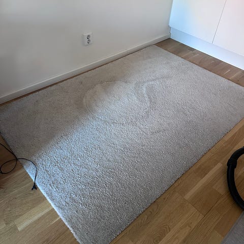 Rusta matta i vit färg. Mattan har mjuk, något längre lugg och passar till exempel i vardagsrum, sovrum eller hall.