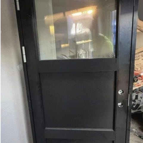 Dörrblad från Diplomat Elvira, i pardörrsutförande i svart färg. Dörren har spegelmönstrade dörrblad och är utrustad med gångjärn och låshus. Passar som entrédörr eller groventré till bostad eller förråd.