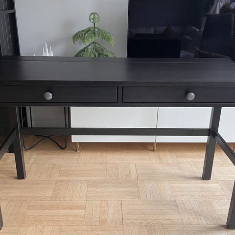 Skrivbord Hemnes IKEA med överbyggnadsdel och lamp-ram. Höjd inkl. överbyggnadsdelen 136 cm.