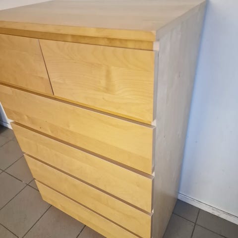 Byrå trä med fem lådor