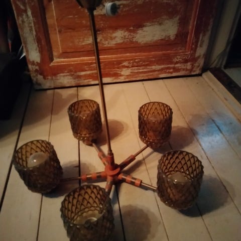 Retro taklampa i mässing med glaskupor, 1960-tal.