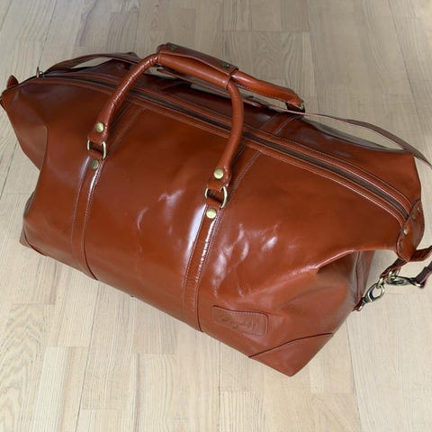 Praktisk och lyxig BAGASI mjukt fodrad weekendväska i kanvas med läderdetaljer. Axelrem, fickor och dragkedja.