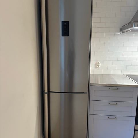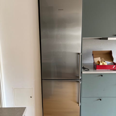 Siemens kombiskåp med kyl och frys i rostfritt utförande. 70cm bredd så extra stort. I bra skick som ses på bilderna.