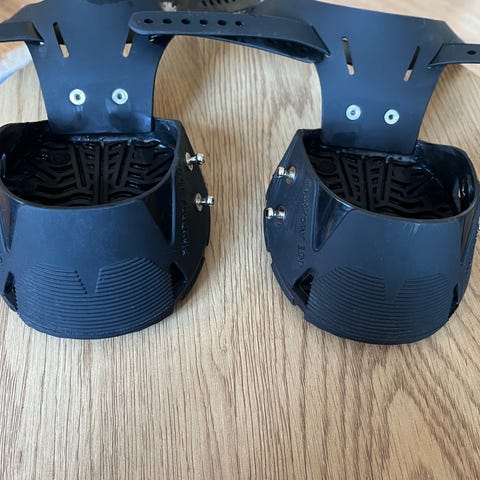 Scoot boots 5 regular. Blå remmar och de stora gaiters ingår. Ingår även de reservdelar som syns i bild. Dubbade och syns att dom är använda men dom har många mil kvar.