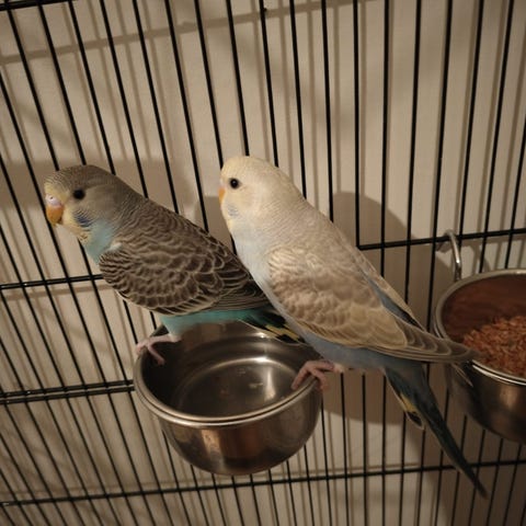 Kiwi och Pippi 1,5år. Ej tamade. Buren,all mat och leksaker ingår i priset.