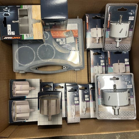Dosfräs för trä. Användes i elhandborrmaskiner, max vartal 1000rpm. Avsedda för trä, masonit, gips, porösa plattor m m. Utbytbart centrumborr och sågblad. Levereras med speciellt centrumborr 8 mm.