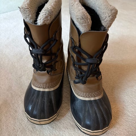 Säljer dessa Sorel Caribou vinterkängor i storlek 40 som är helt nya och endast använts 3 gånger. Dessa kängor har även en uttagbar thermoplus innersko i värmande filt för att lättare kunna torkas efter användning. Skorna är mycket bekväma och värmande helt utan fel.