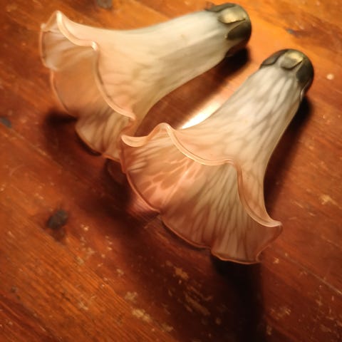 Sänglampor / Vägglampor. Glaset i superfint skick, lim/färgrester på metallkåpan, saknar stickpropp