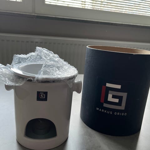Glögg/Fondue värmare i glas för värmeljus.