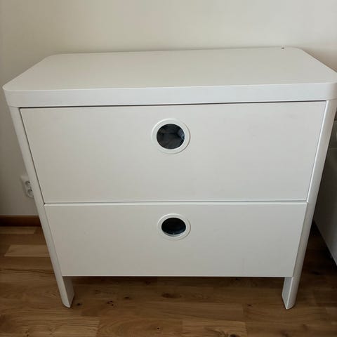 Säljer min dotters barnbyrå i mycket fint skick köpt från IKEA - välskött, inga repor. Byrån har 2 stora rymliga lådor som ger gott om förvaring. Dessutom har den runda kanter som gör den barnvänlig.