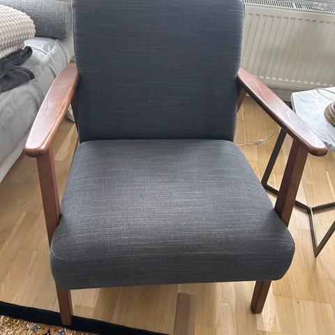 Fin karmfåtölj i teak, 1950/60-tal. Skön att sitta i! Bruksslitage, se bilder.