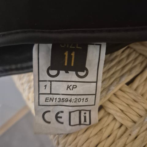 Lindstrands mc-handskar i svart färg. Dam-handskar storlek 8, justerbar rem vid handleden och förstärkningar i handflatan. Textil- och syntetmaterial med vadderade partier och förlängd mudd för att täcka över jackärmen. Passar för motorcykelkörning och liknande användning där skyddande handskar behövs.