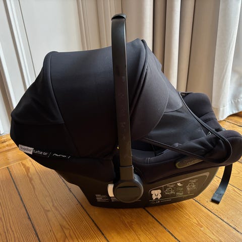Nuna babyskydd bilbarnstol för barn 0–13 kg. Modellen är ett bakåtvänt babyskydd avsett för de minsta barnen. Klädsel i grå textil med ljus insida och justerbar bärhandtag. Babyskyddet har medföljande spädbarnsinlägg. Passar för montering i bil tillsammans med isofix-bas (basen syns på bilderna och den ingår i köpet) eller med endast bilbälte. Babyskyddet kan användas från nyfödd upp till cirka 13 kg, beroende på barnets längd och vikt enligt tillverkarens rekommendationer.