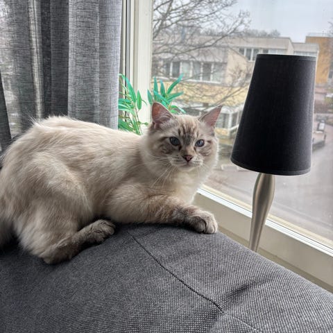 Han är en blandning mellan Perser (Shirazi) och Ragdoll, vilket gör honom både väldigt vacker och lugn i temperamentet.