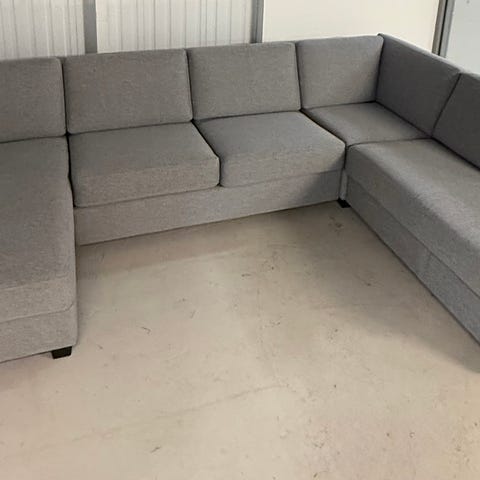Soffan har inga repor, slitage eller fläckar. Hela soffan är ångtvättad samt alla kuddar är tvättade med.