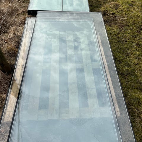 Fasettslipade små glasrutor i metallram .Tjockt glas. 2 st