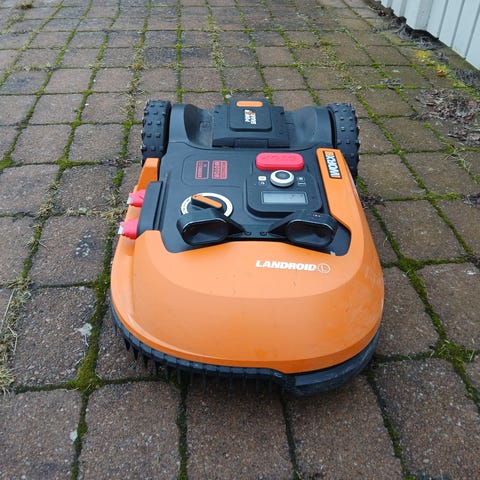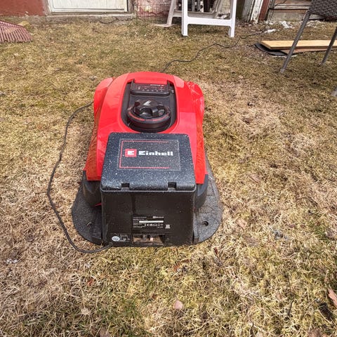 Mycket bra robotgräsklippare som används i två säsonger. Jag har köpt till extern batteriladdare och ett extra batteri, detta medföljer. Finns ca 200m begränsningskabel samt ca 350 markspik. Jag har tagit in maskinen och laddstationen i garage under vintern.