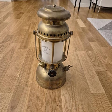 instruktionsbladet som medföljer är tryckt 1954 – så det kanske även är åldern på lyktan?