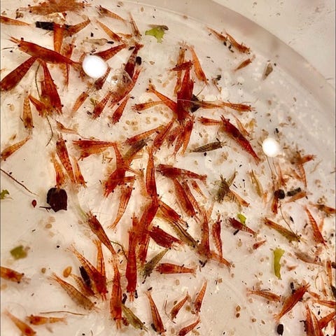 Här har jag ca 200 mixade räkor som längtar efter nytt vatten att få städa i! 🦐