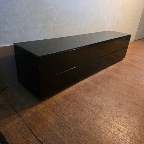 Svart/bruna nattduksbord med mycket utrymme.