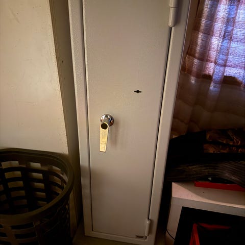 Habo vapenskåp för upp till 10 vapen i vitt stål. Skåpet är utrustat med hyllplan och krokar på insidan av dörren för förvaring av tillbehör. Mekaniskt lås med nyckel. Skåpet är avsett för säker förvaring av jaktvapen och andra skjutvapen enligt gällande krav. Passar för placering i exempelvis förråd, garage eller bostad där ett godkänt vapenskåp behövs.