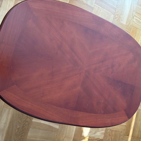 Stilrent soffbord från möbeltillverkaren Bordbirger. Modell Madrid i körsbärsfanér.