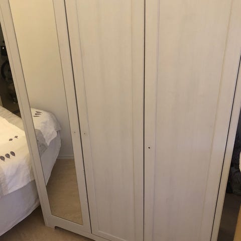 Inkluderat: 5 stolpar från golv till tak (justerbara, finns ett par extra att få med), 2 stänger att hänga kläder på 110 cm plus en hylla med samma längd ovanför. 10 skohyllor 50 cm breda. 6 lådor 55 x 50. Hylla 55 x 50 cm. Allt som behövs för montering ingår.