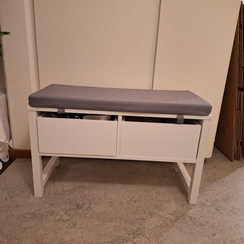 Sittbänk med utdragbara lådor.