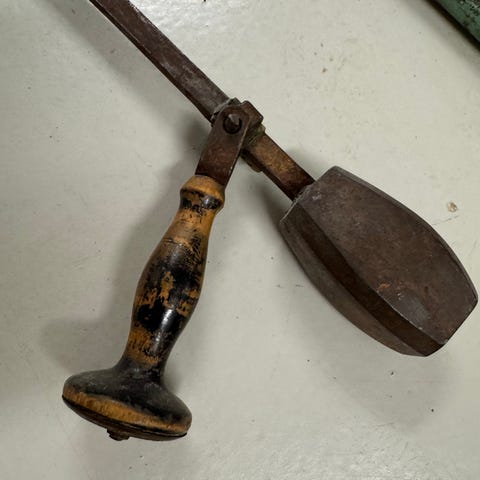 Blandade äldre verktyg och vågar metall trä