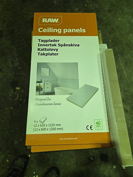 Innertak 6 oöppnade och 1 öppnad förpackning netto 2,88 kvm per förpackning