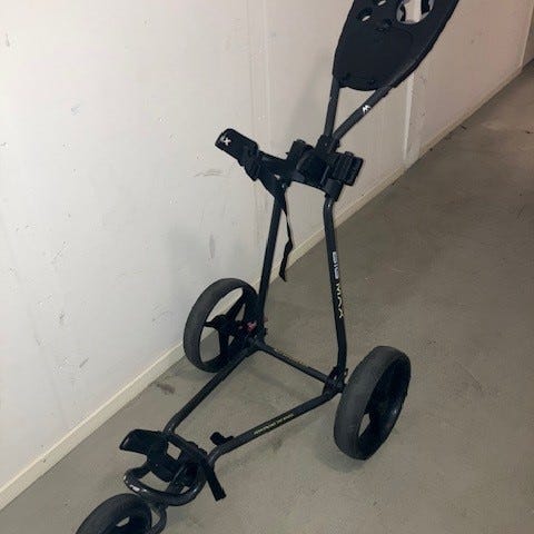 Två stycken Big Max Basic Hopfällbara golfvagnar i svart färg. Synligt använda men i bra skick.