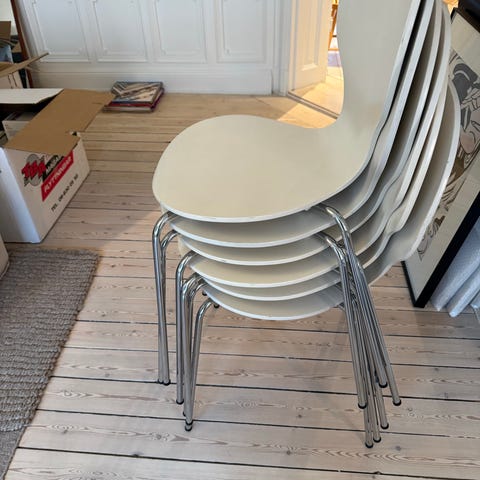 6 stycken stolar i fint skick. Vita/creme färgade.