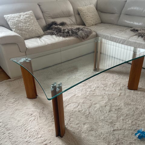 Fint soffbord med glasskiva. Bra skick! Hämtas i Nacka.
