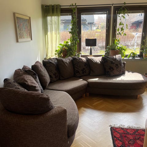 Soffan är gammal, mycket skön att sitta i och mycket lite använd.
