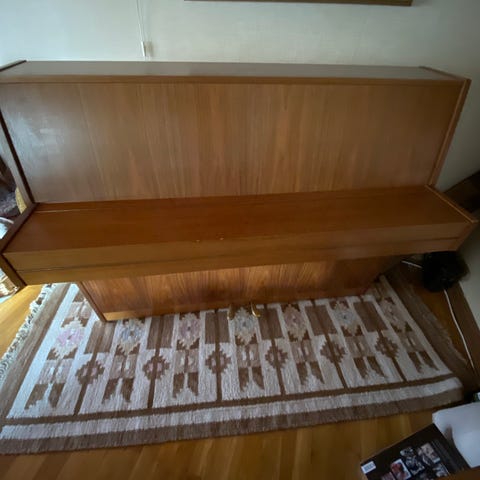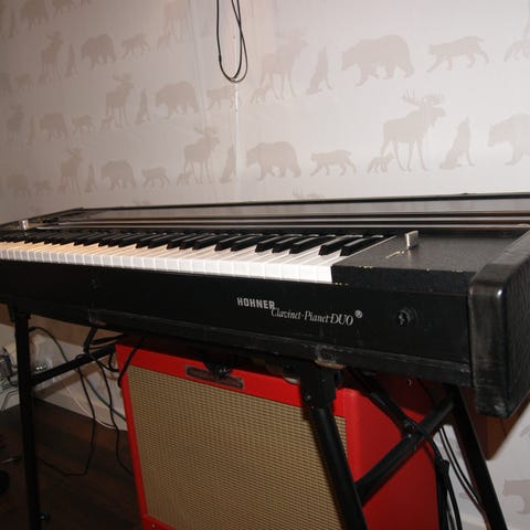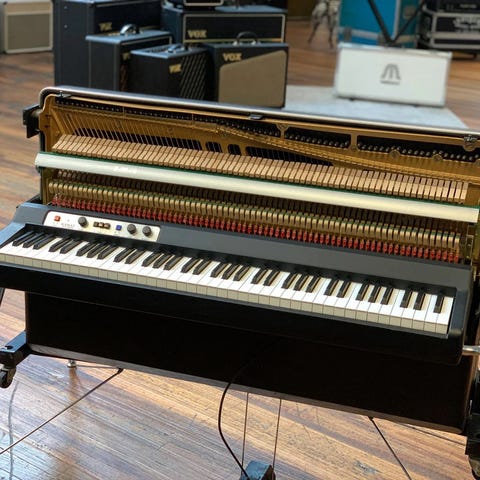 Ett väldigt ovanligt akustiskt turnépiano från Helpinstill (sent 70-tal/tidigt 80-tal). Man kan beskriva det som ett riktigt bra piamino där själva möbeln är ett case. Ett speciellt och välljudande mikrofonsystem från Helpinstill sitter inne i pianot, bakom strängarna och gör att du kan få ett riktigt bra liveljud utan läckage och rundgång. Du kan även experimentera med effektpedaler via tele- eller XLR-utgången. Pianot har 64 tangenter, en sträng per ton i basen och två strängar per ton i resten av registret vilket gör det lättare att stämma mot ett vanligt piano. Mått: 112 cm (bredd) × 32 cm (djup) × 91 cm (höjd)