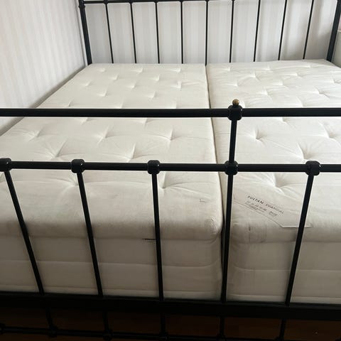 Behöver du ny säng till sovrummet eller till stugan? Eller har något projekt på gång? Jag säljer en fin IKEA Svelvik sängram i metall till ett mycket överkomligt pris. Det är en klassisk sängram med huvudgavel och fotgavel i metall med stående spjälor. Ett KANONPRIS för det som ingår.