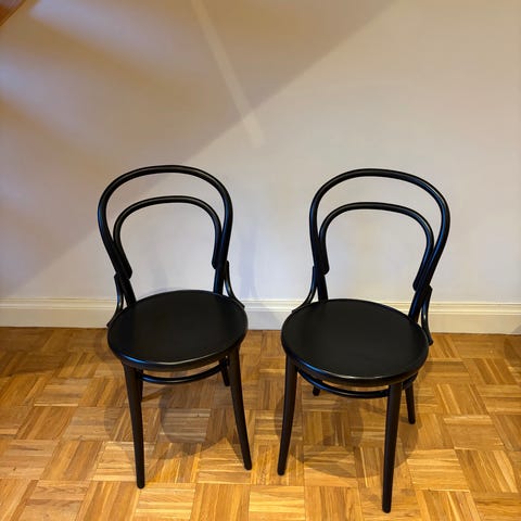 Två renoverade stolar av modellen No 14 i bok.