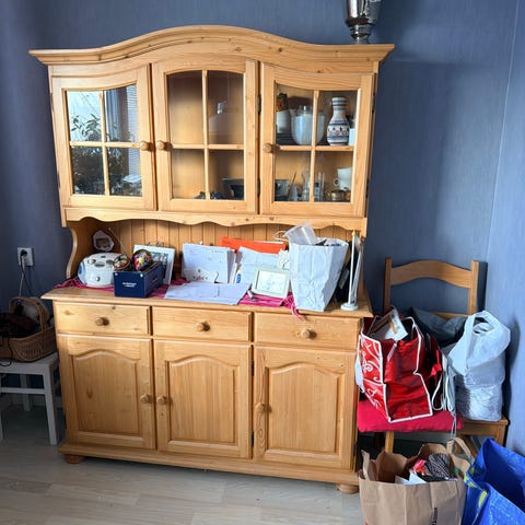 Fin media/ förvaringsskåp i massivt furu på hjul. Förstärkt på baksidan om man vill ha det på väggen.