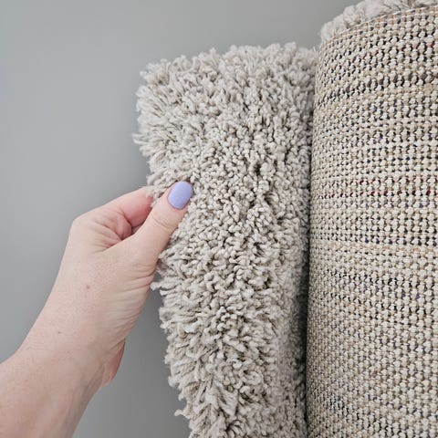 Visar både fram och baksidan på mattan